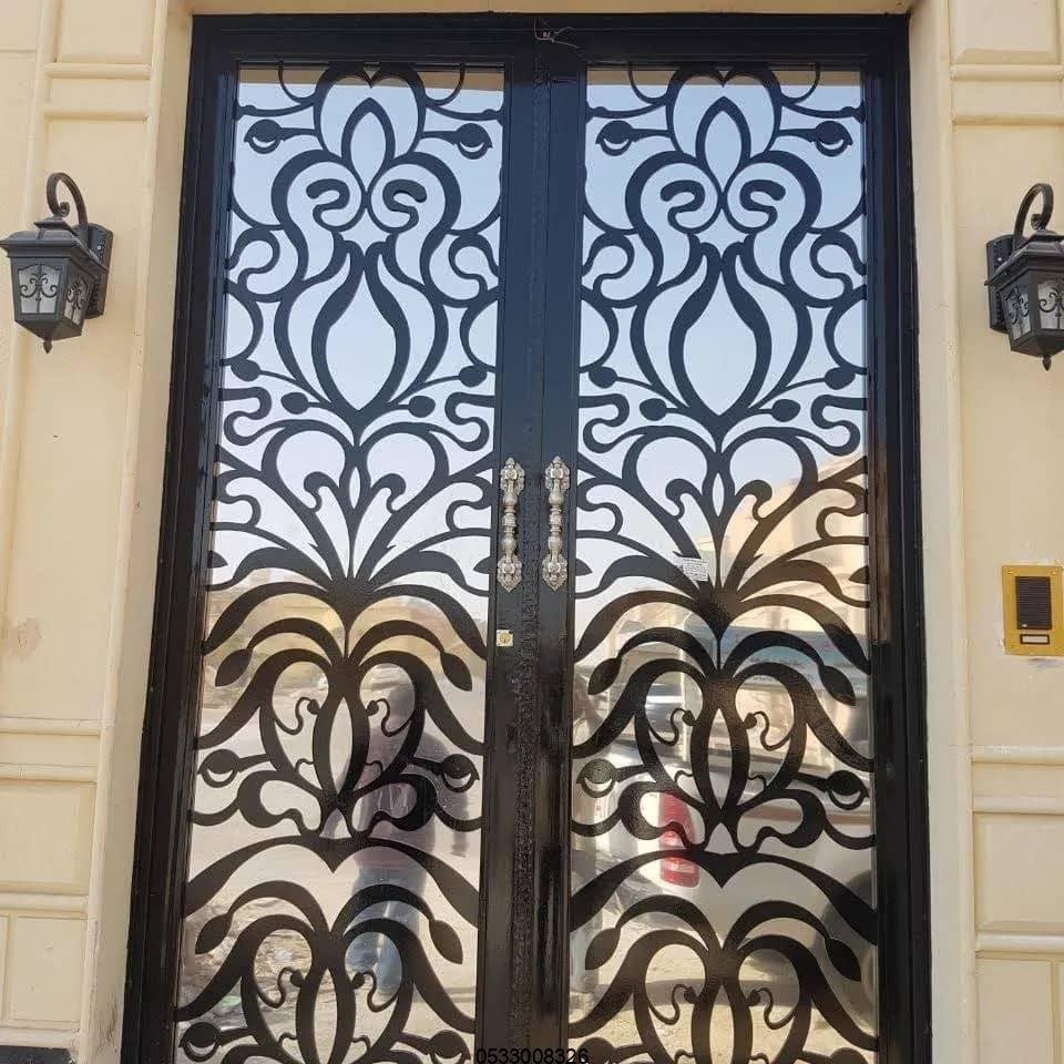 • أبواب حديدية مع تصفيح أو زخارف ليزر.